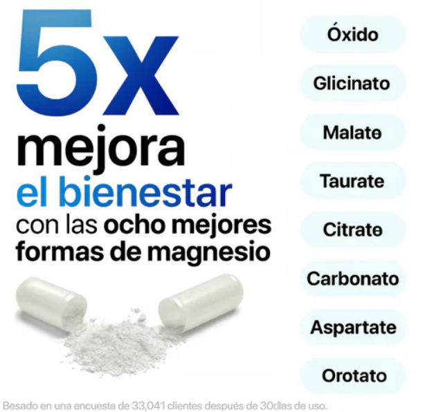 - Magnesio Aspartato, Bisglicinato y Treonato (máxima absorción y enfoque mental 🧠)